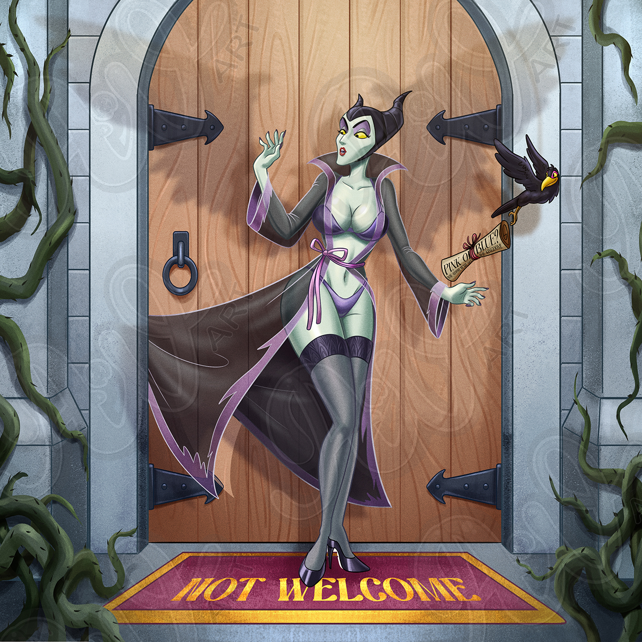 Add a new accent to your spaces with this Maleficent matted poster. This original artwork has your favorite cartoon characters reimagined in a way you’ve never seen before.