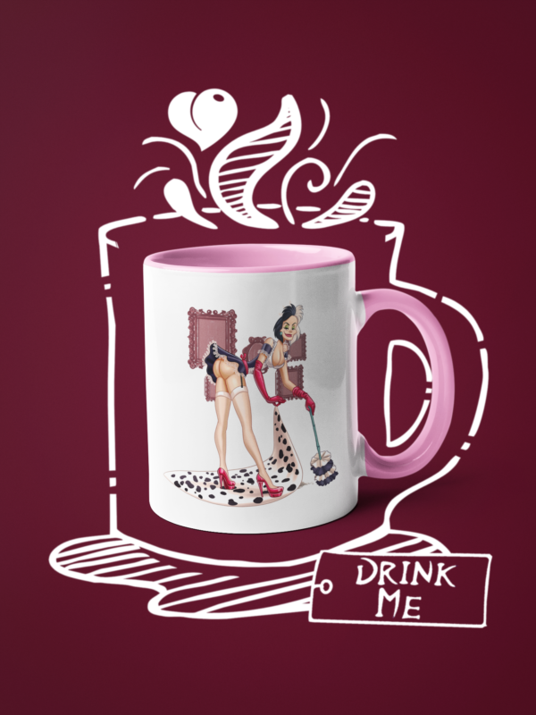 Start your day off right with this Cruella mug! Have fun while you sip from one of our coffee mugs with this unique artwork. Available in different colors.
