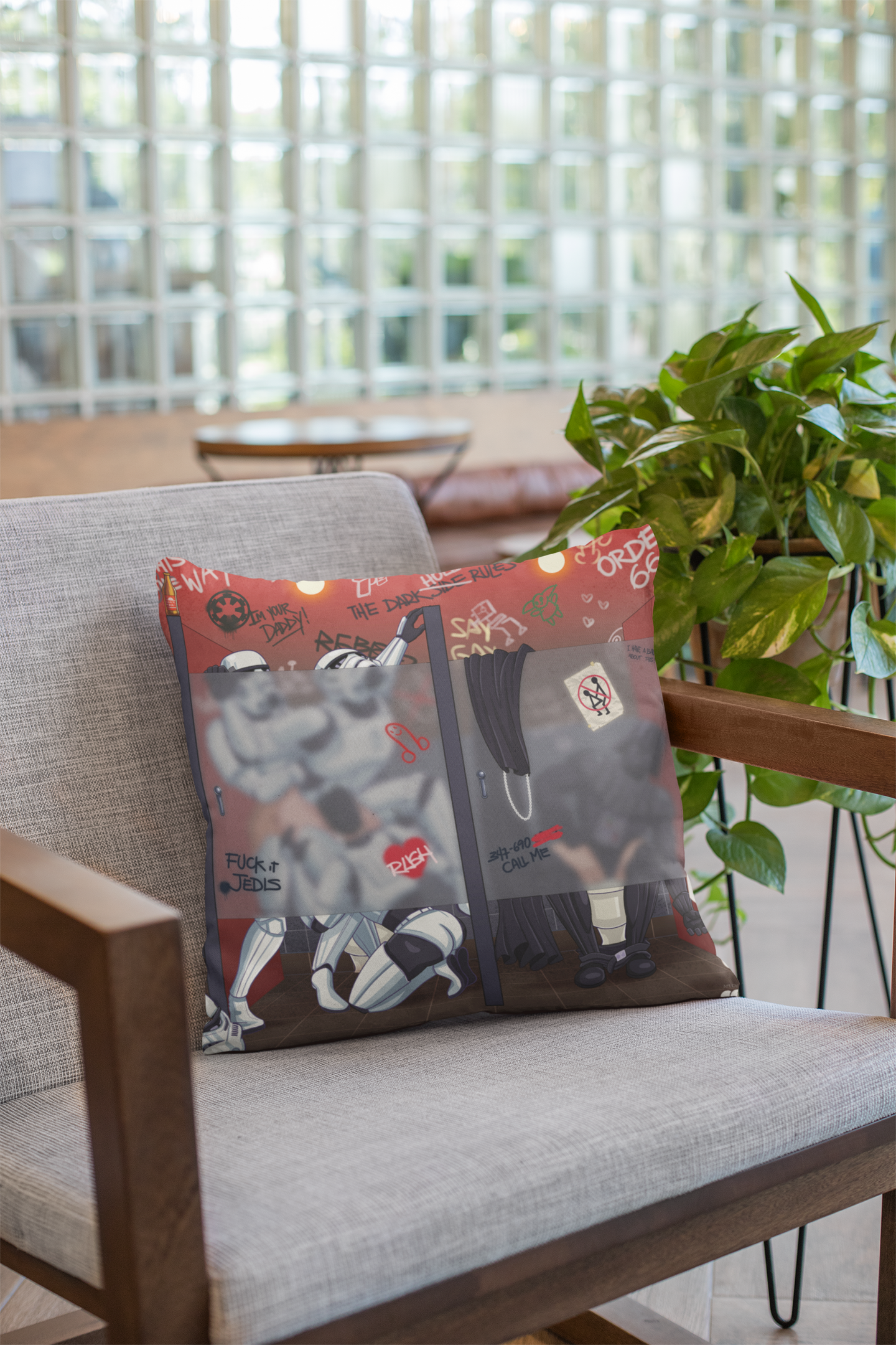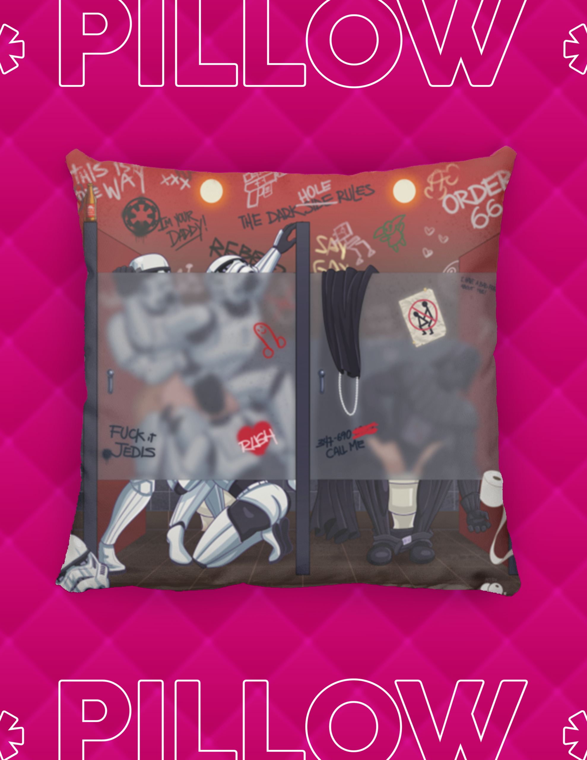 Add a pop of personality to your space with this Gay Star Wars-Inspired throw pillow. Featuring original artwork that reimagines your favorite cartoon characters in a way you’ve never seen before, this decorative pillow blends comfort, attitude, and eye catching design. Perfect for couches, beds, and statement corners, it brings attitude, color, and a playful edge to your home decor.