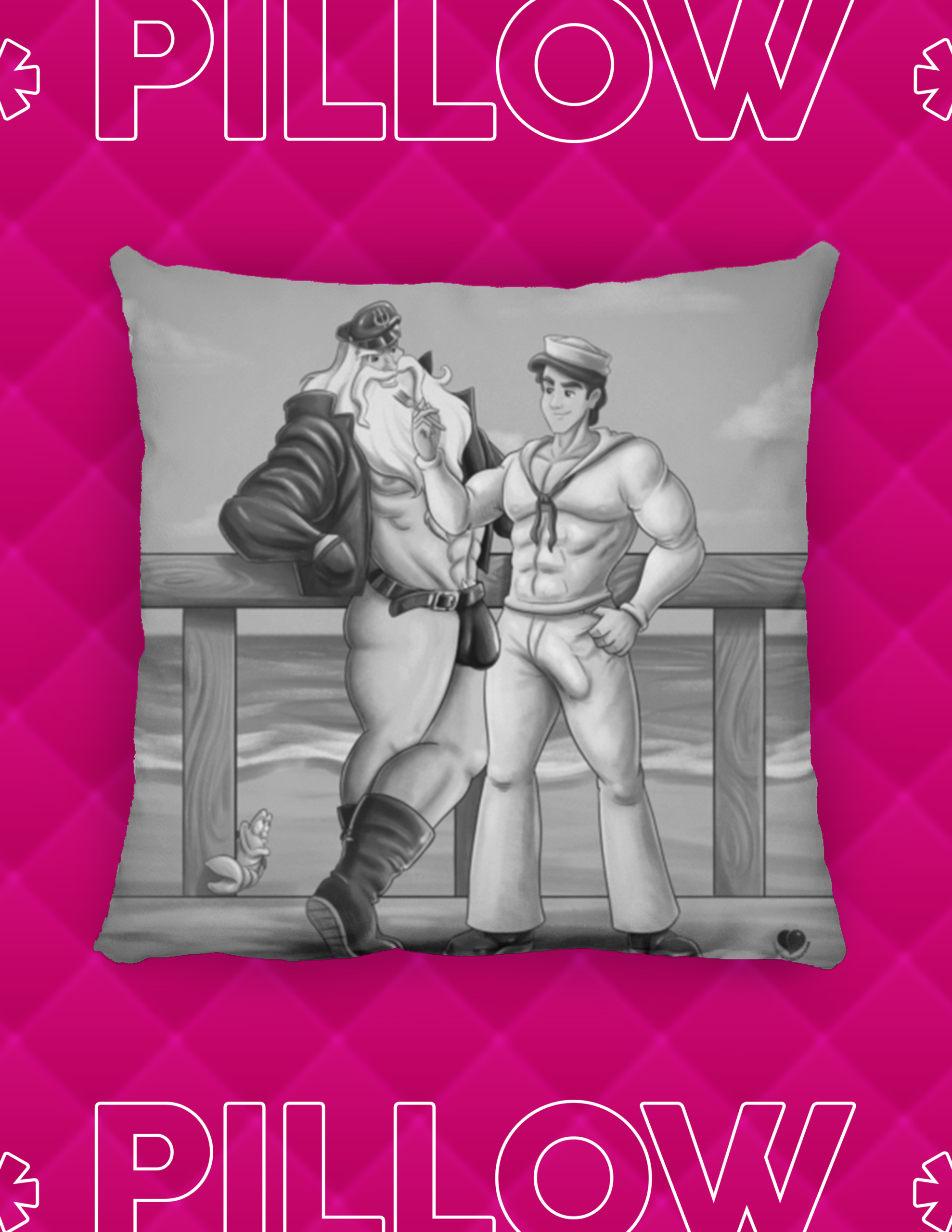 Add a pop of personality to your space with this Prince Eric and Triton/Tom of Finland-Inspired throw pillow. Featuring original artwork that reimagines your favorite cartoon characters in a way you’ve never seen before, this decorative pillow blends comfort, attitude, and eye catching design. Perfect for couches, beds, and statement corners, it brings attitude, color, and a playful edge to your home decor.