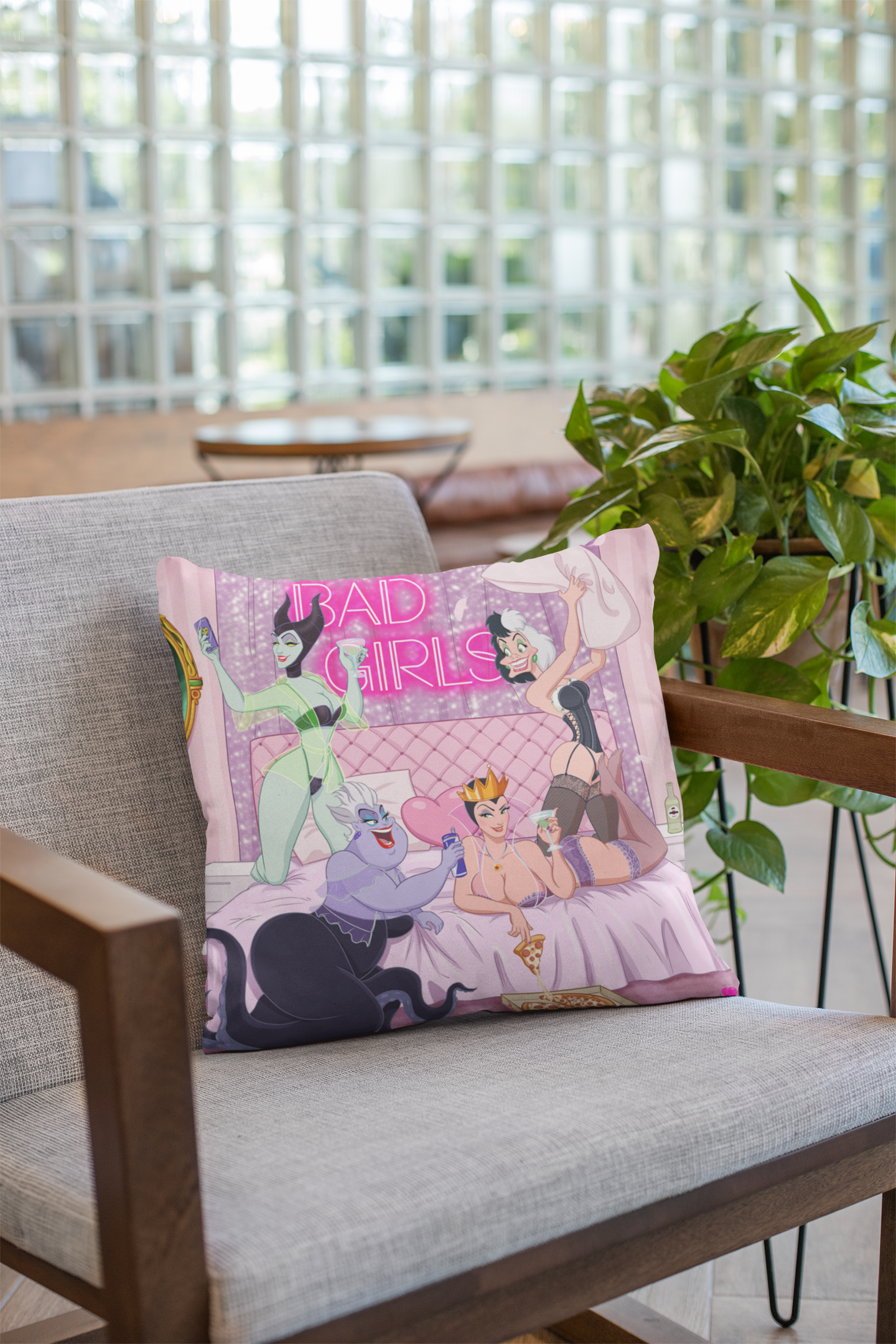 Add a pop of personality to your space with this Disney Villains Party throw pillow. Featuring original artwork that reimagines your favorite cartoon characters in a way you’ve never seen before, this decorative pillow blends comfort, attitude, and eye catching design. Perfect for couches, beds, and statement corners, it brings attitude, color, and a playful edge to your home decor.