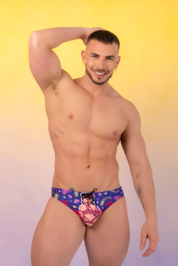 The Fetish Shibari Swim Briefs bring your favorite cartoon fantasies into a sleek, playful silhouette. Whether you are team Hero or team Trouble, this design adds color, attitude, and a spark of nostalgia to every swim. Comfortable, flattering, and made for fun from sunrise to splash.
