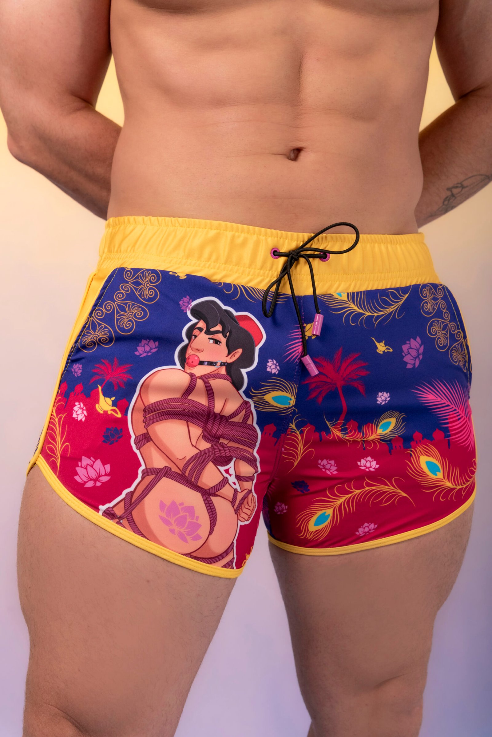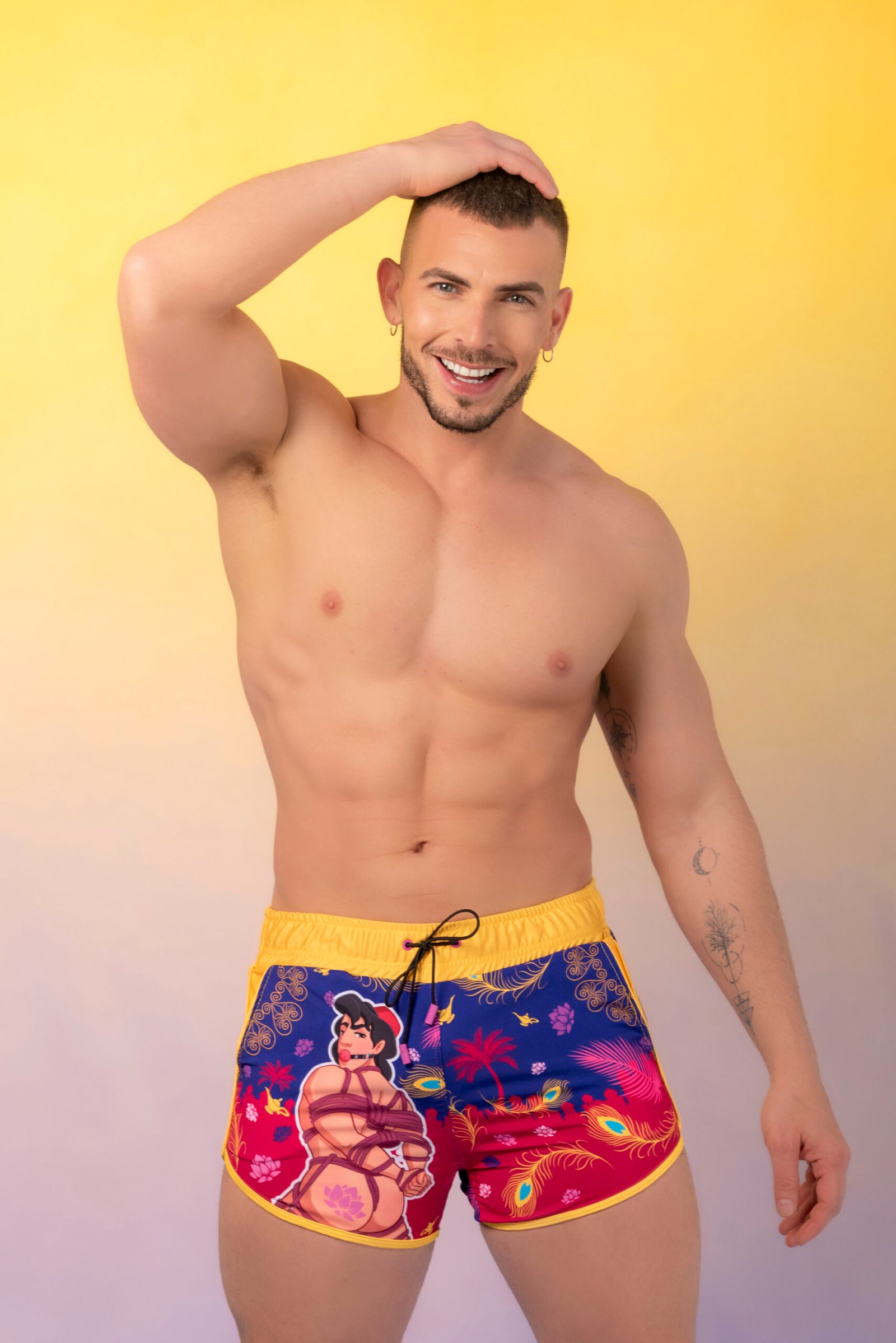 The Fetish Shibari Swim Shorts bring your favorite cartoon fantasies to life with a playful, sexy twist. Whether you are team Hero or team Trouble, this design adds attitude, color, and a touch of nostalgia to every pool or beach moment. Comfortable, eye catching, and made for fun from sunrise to splash.