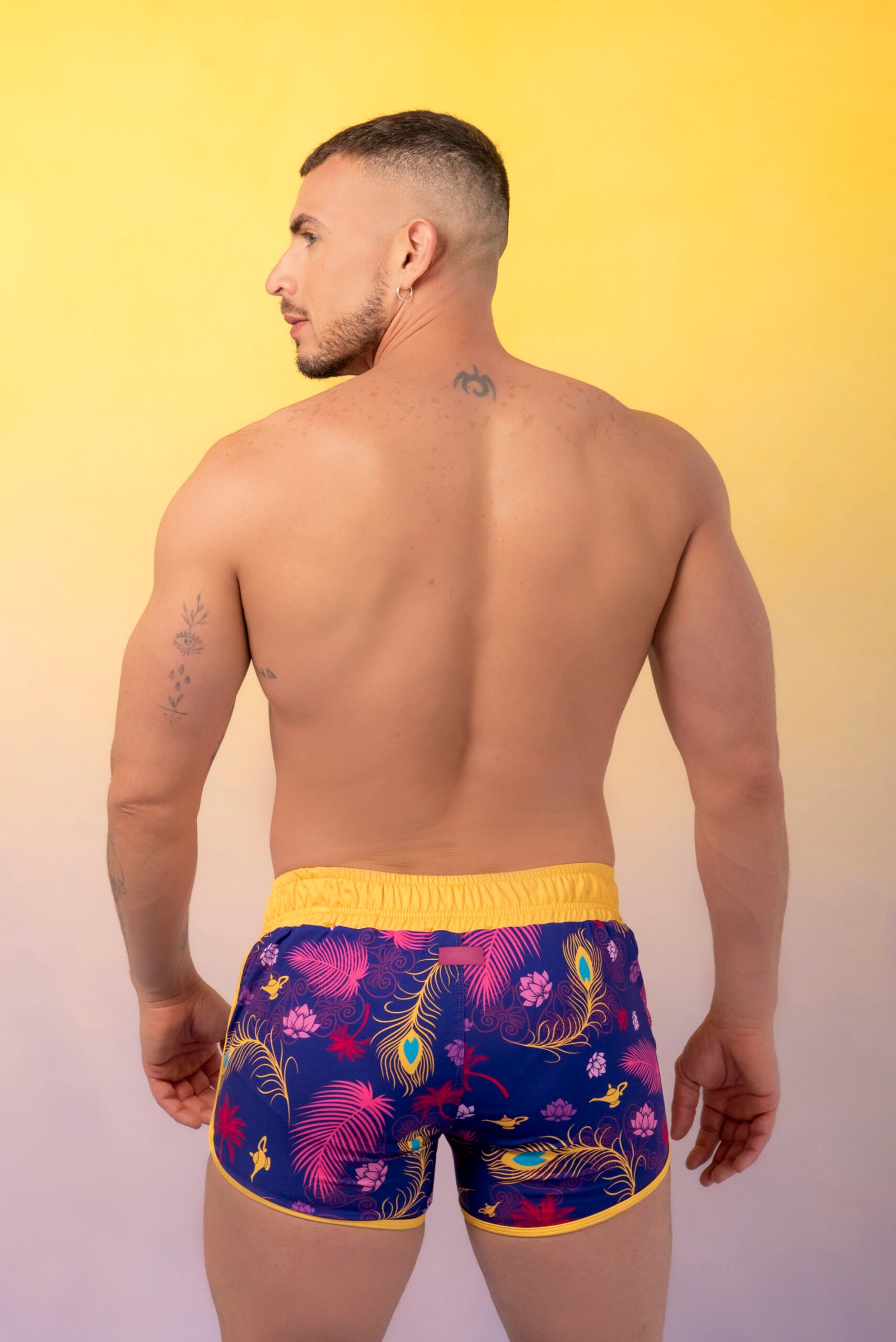 Our Swim Shorts are made with a lightweight blend of 88% Polyester and 12% Spandex for vibrant, long lasting color and comfortable stretch. Designed with small side pockets, custom signature pink hardware, and internal mesh. Made in Colombia.