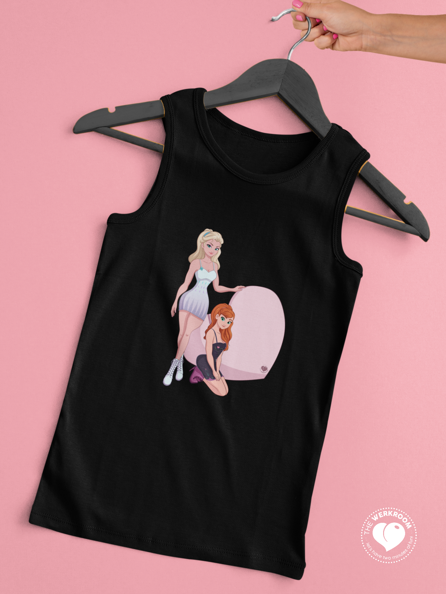 Make your own style with this Elsa and Anna Tank top! and no matter what style you choose, remember to be yourself. Our original artwork has your favorite cartoon characters reimagined in a way you’ve never seen before, it is entertaining, irreverent, tantalizing… and inclusive to all.
